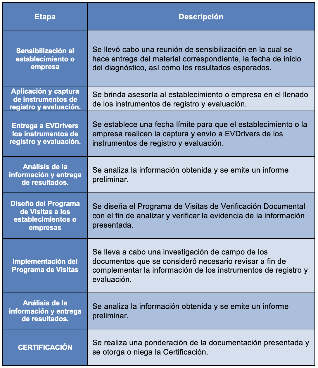 Evaluación de Establecimientos en búsqueda de certificación